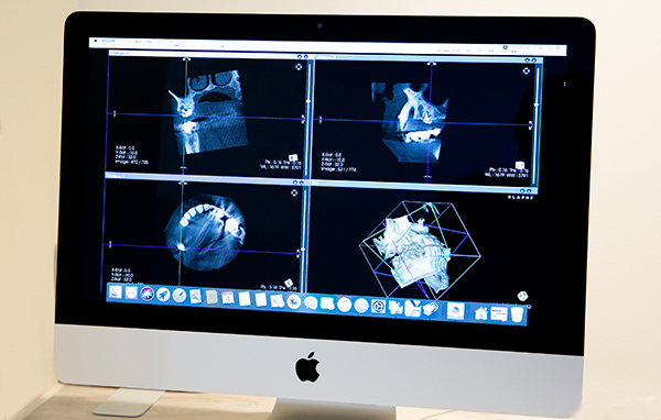 当院はデジタルレントゲンに加えて、歯科用CTを導入しておりますので、3D画像で確認し、精密な診査・診断を行っています。 -