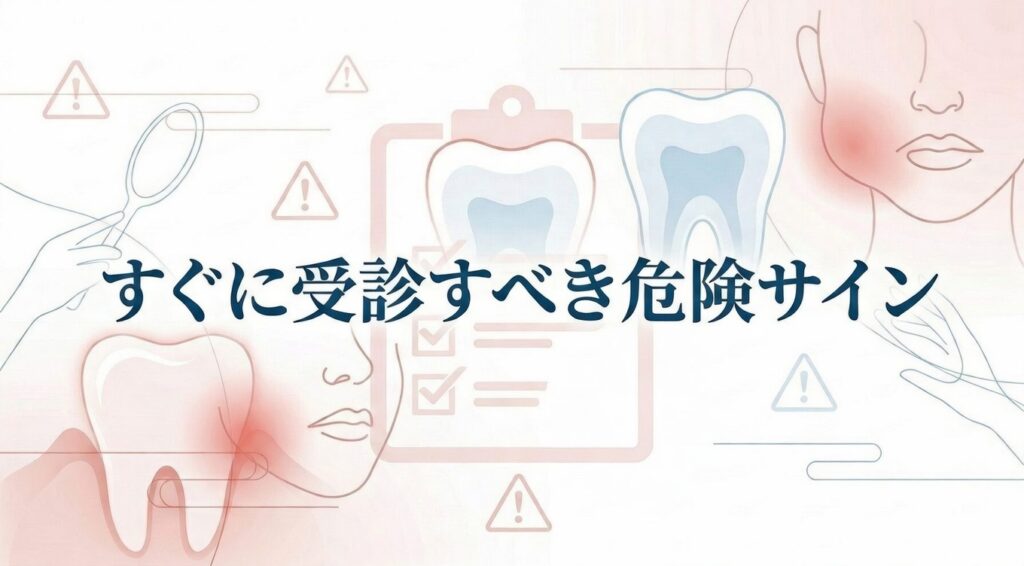 次の症状がある場合は、自己判断せず早めに歯科または医療機関へ相談してください。